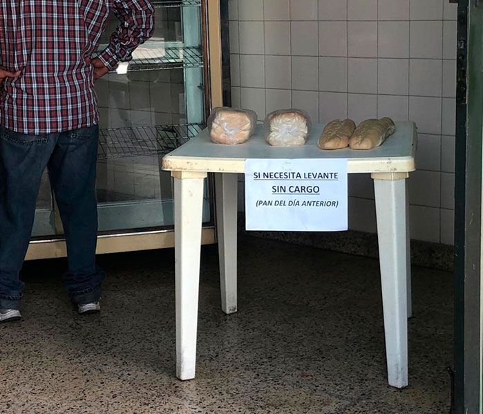 "Levante sin cargo" reza el cartel que se encontraba sobre una mesa en la entrada de la tradicional Panadería París, del microcentro monterizo.