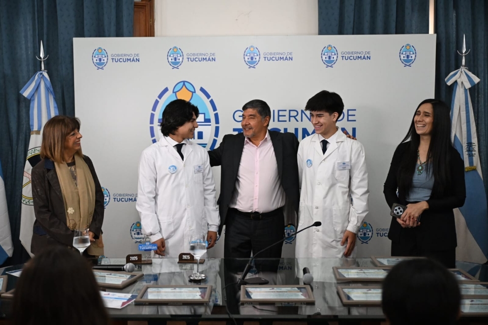 Durante el acto también fueron reconocidos Lautaro Miguel y Francisco Yanguez, alumnos de la Escuela Normal Superior Teniente Julio Argentino Roca, de Monteros, ganadores del concurso “Enseñame Tucumán”. Como premio, su curso viajará a Carlos Paz.