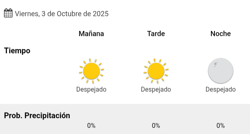 El fin de semana llegará con marcas térmicas elevadas, el sábado se estima 36° y 29° para el domingo, y por la tarde ráfagas fuertes de viento. Probabilidades de lluvias: cero.