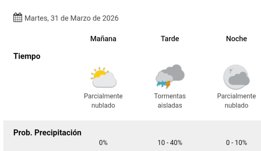 En cuanto a las marcas térmicas para hoy, son las siguientes: 22° de mínima y 33° de máxima que podría llegar al mediodía. La humedad es del 89%. El viento corre del este a 4 km/h y la visibilidad es de 12 km.