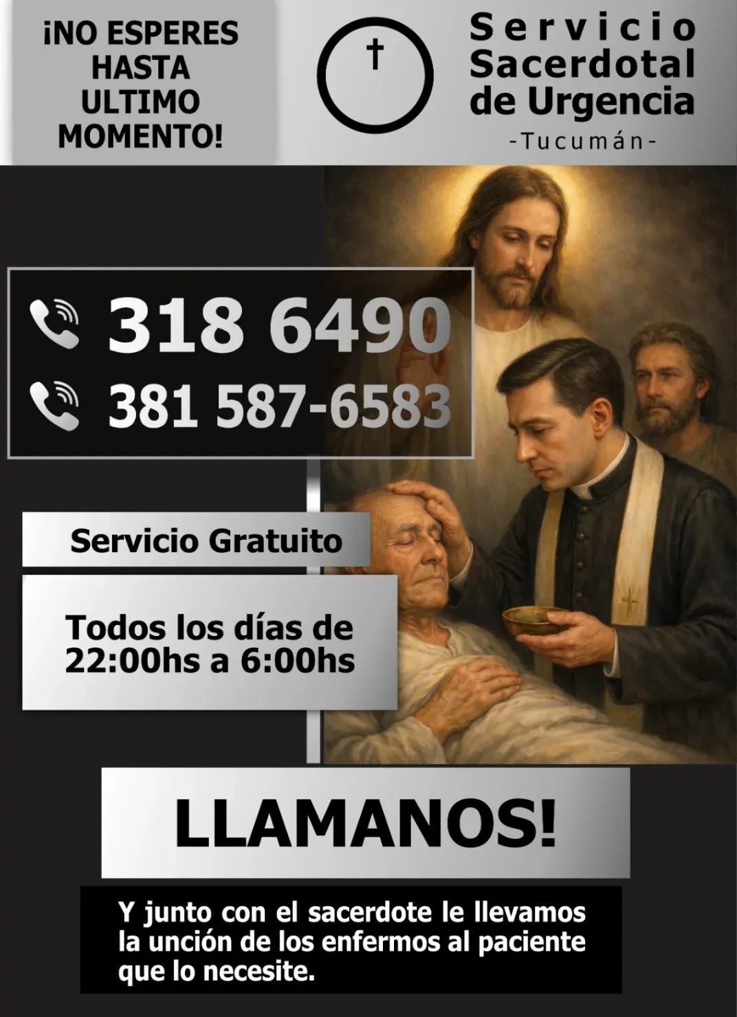 El Servicio Sacerdotal de Urgencia recordó que su labor es totalmente gratuita, y que nunca solicita aportes económicos ni transferencias de dinero. Su misión es brindar acompañamiento espiritual a enfermos y administrar sacramentos, especialmente la Santa Unción, en horarios nocturnos. Por ello, cualquier mensaje que incluya un CBU o pedido de colaboración monetaria debe ser considerado una estafa.