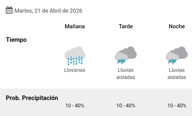Las lluvias acompañarán toda la jornada del martes